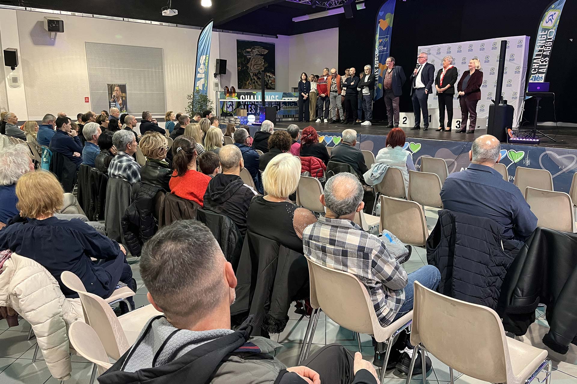 L’évènement, organisé par Alès Agglomération, a été l’occasion de célébrer à la fois l’investissement des organisateurs de courses et les performances des coureurs qui ont arpenté les routes et chemins du territoire tout au long de l’année 2025. La soirée a débuté sur les coups de 18h45 devant un public enthousiaste, composé d’athlètes, de bénévoles et de représentants des communes participantes. Pendant plusieurs mois, le challenge a en effet fédéré 16 épreuves réparties dans les villages de l’agglomération, invitant coureurs licenciés et simples amateurs à se mesurer sur des parcours variés. « Cette quatrième édition du Challenge est vraiment une grande réussite ! », a partagé Marie-Claude Albaladejo, conseillère communautaire chargée d’orchestrer le l’évènement, relevant que 2 720 sportifs ont pris part à au moins une course du Challenge, contre 2 300 en 2024. « Le nombre de finishers, c’est-à-dire de coureurs ayant réalisé la quasi-totalité des courses au calendrier, a également augmenté, notamment chez les jeunes. Ça augure une belle dynamique pour les éditions à venir. »